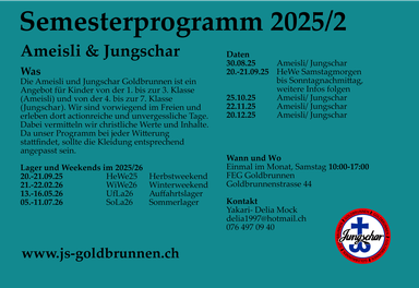 Die Flyer für die Lager und Weekends erhältst du rechtzeitig in der Jungschar oder wir schicken dir diese auch gerne per Post zu.